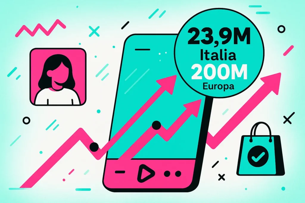 (Le cifre riportate provengono dalle comunicazioni ufficiali e da copertura stampa/industry: 23,9M utenti Italia; 200M Europa; 75% luogo dei trend; ~80% ispirati all’acquisto; 8.000 venditori italiani su TikTok Shop.)